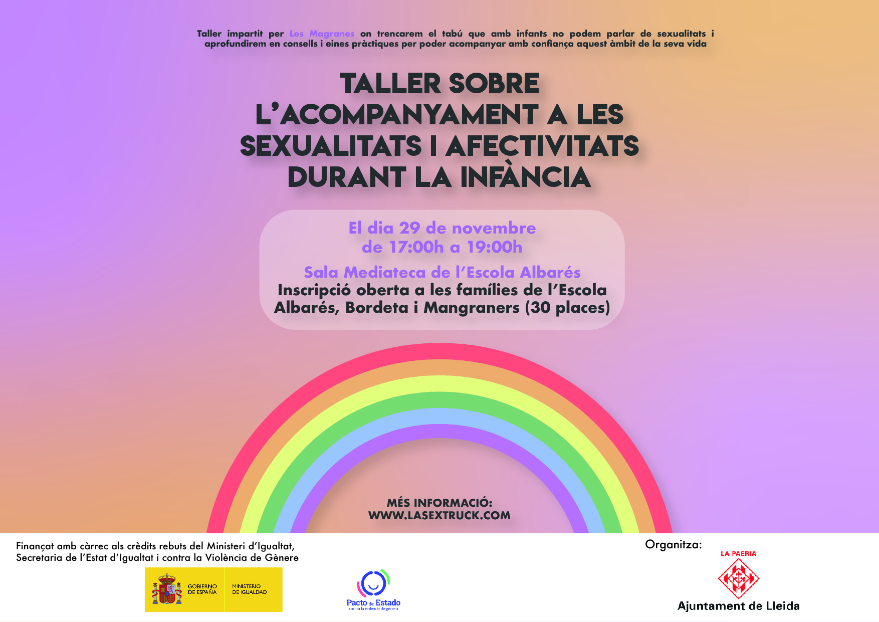 Taller impartit per Les Magranes on es tractarà el tabú que amb infants no es pot parlar de sexualitats i s'aprofundirà en consells i eines pràctiques per poder acompanyar amb confiança aquest àmbit de la seva vida.