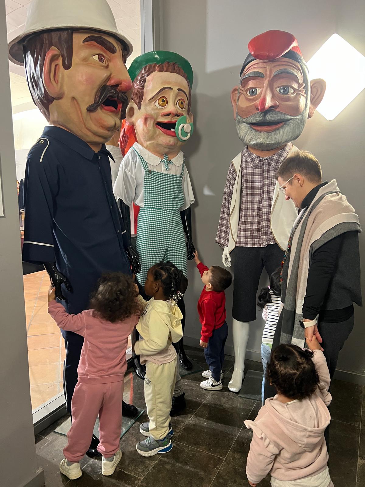 Els infants de l’aula de I2 durant la visita a la casa dels gegants van poder conèixer: els Cavallets, els Marraquets, l´Àliga, una imatge gran del Marraco, i els infants que van voler van poder tocar els Capgrossos.