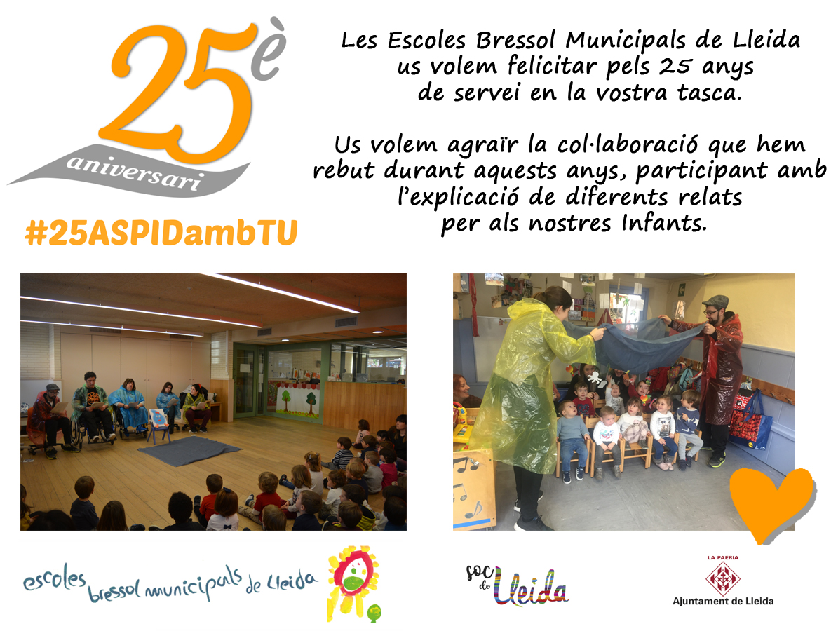 El centre Aspid celebra els seus 25 anys i les Escoles Bressol Municipals de Lleida els volen felicitar per la seva tasca i animar-los continuar molts anys més.