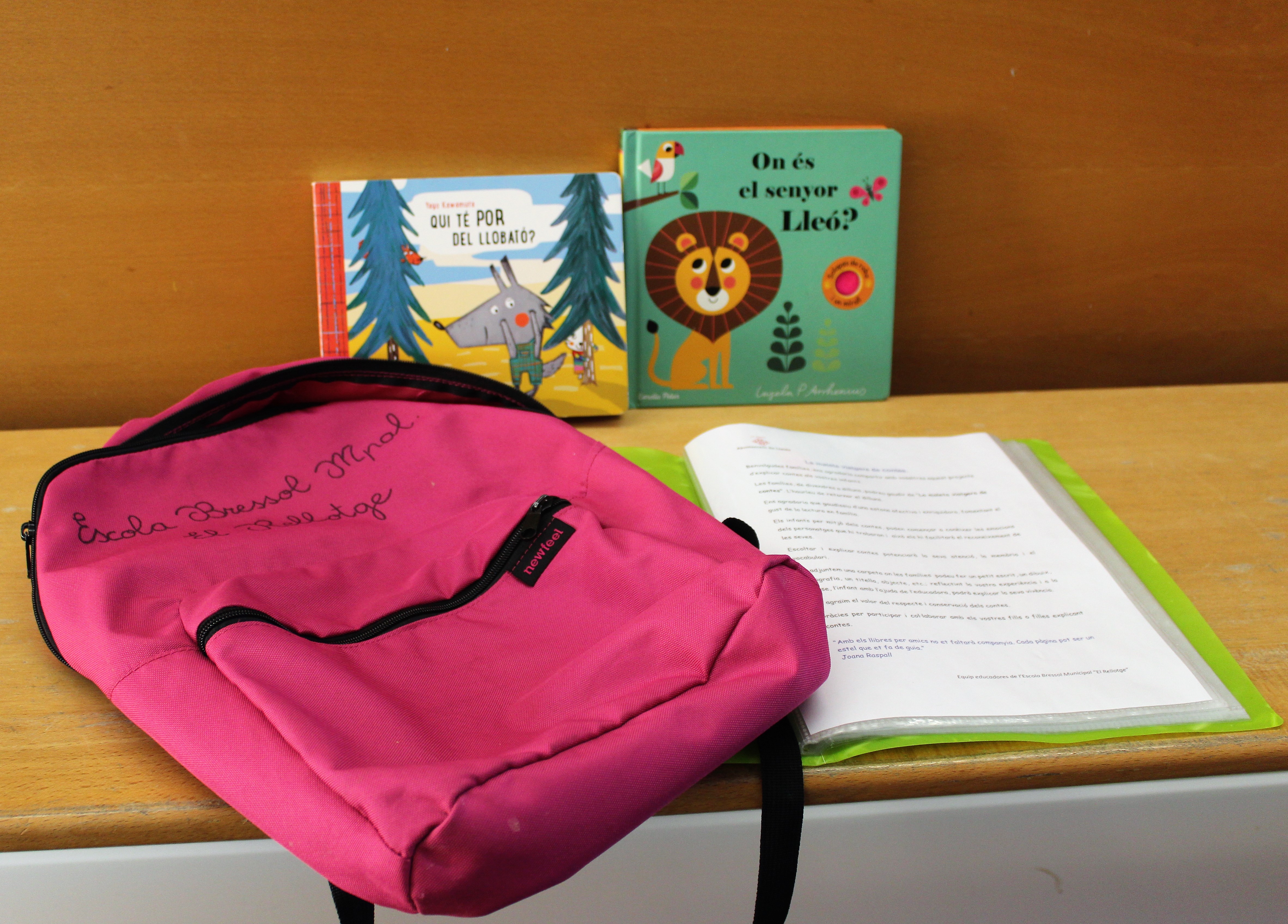 La maleta consta de dos contes i un portafolis, on poden plasmar les vivències que han viscut en el transcurs dels dies que han gaudit de tenir-la a les seves llars.