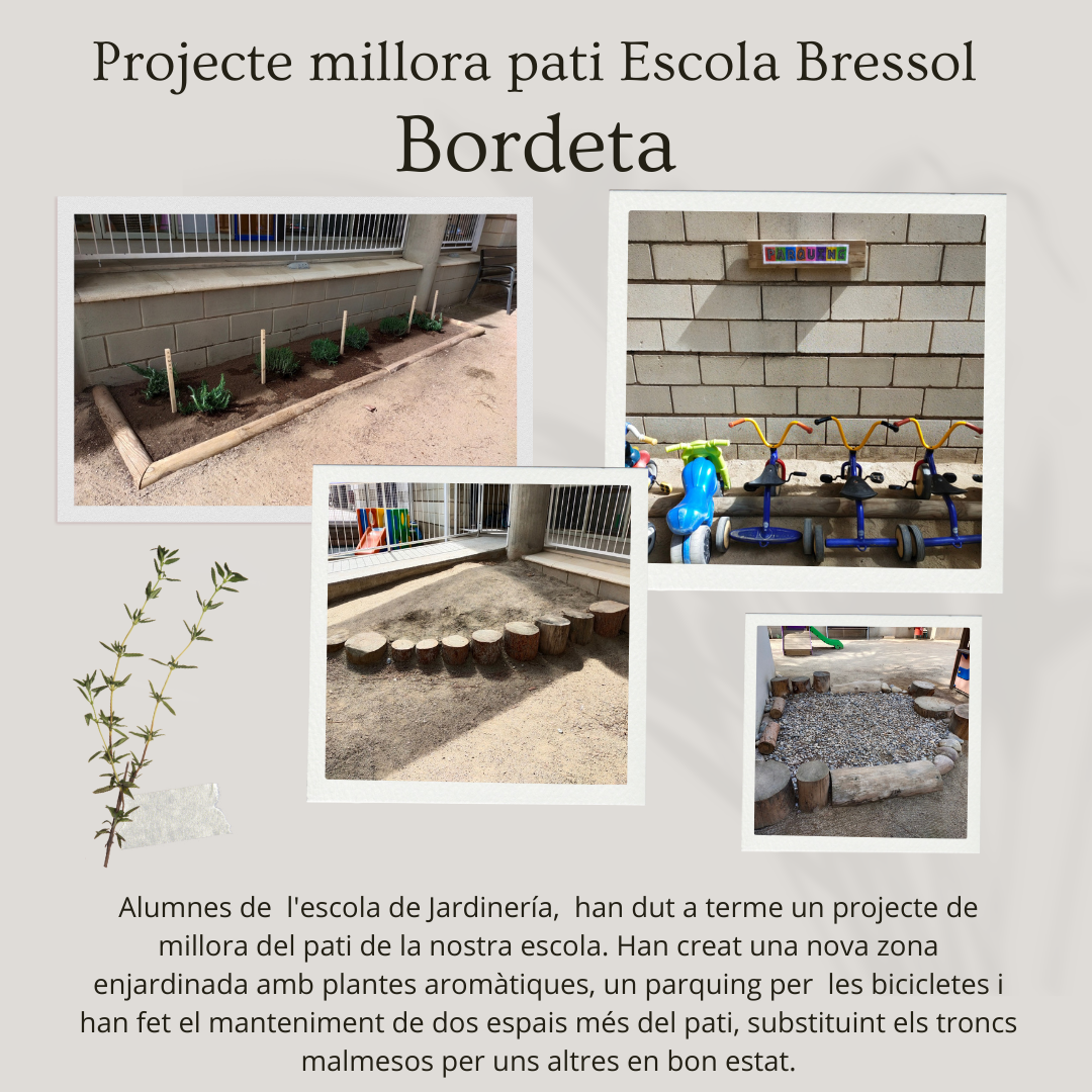 A l'Escola Bressol Municipal de la Bordeta s'ha dut a terme un projecte de millora del pati amb la col·laboració dels alumnes i professores de l'Escola de Jardineria.