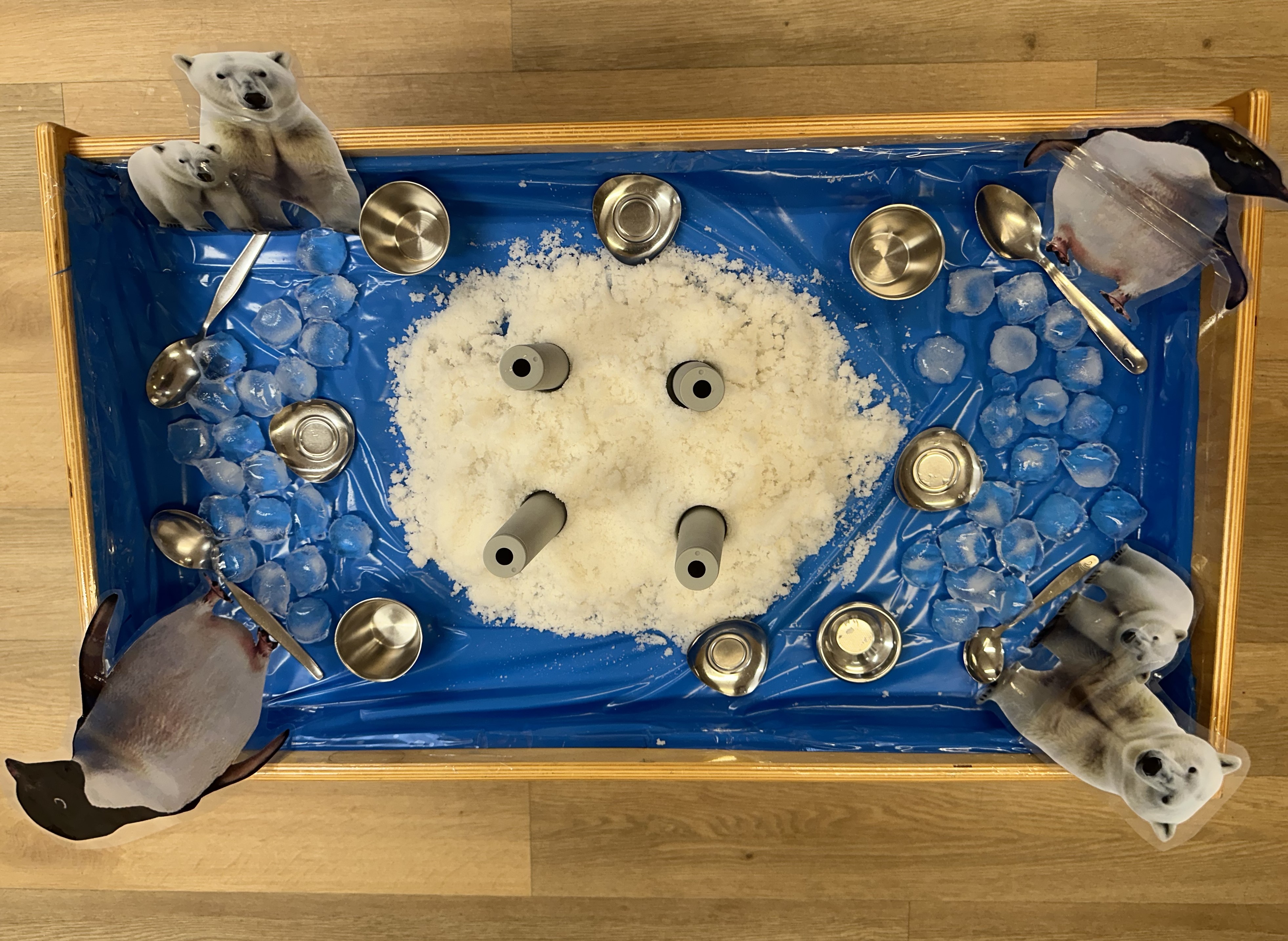 Acompanyada de glaçons de gel, imatges d'ossos polars, pingüins i altres elements de manipulació, els infants s'han pogut aproximar al fred de les muntanyes gelades i jugar amb ella.