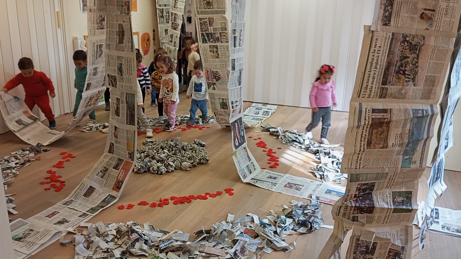 La nostra aprenent Daniela ha presentat una sessió de joc amb paper de diari i pètals.