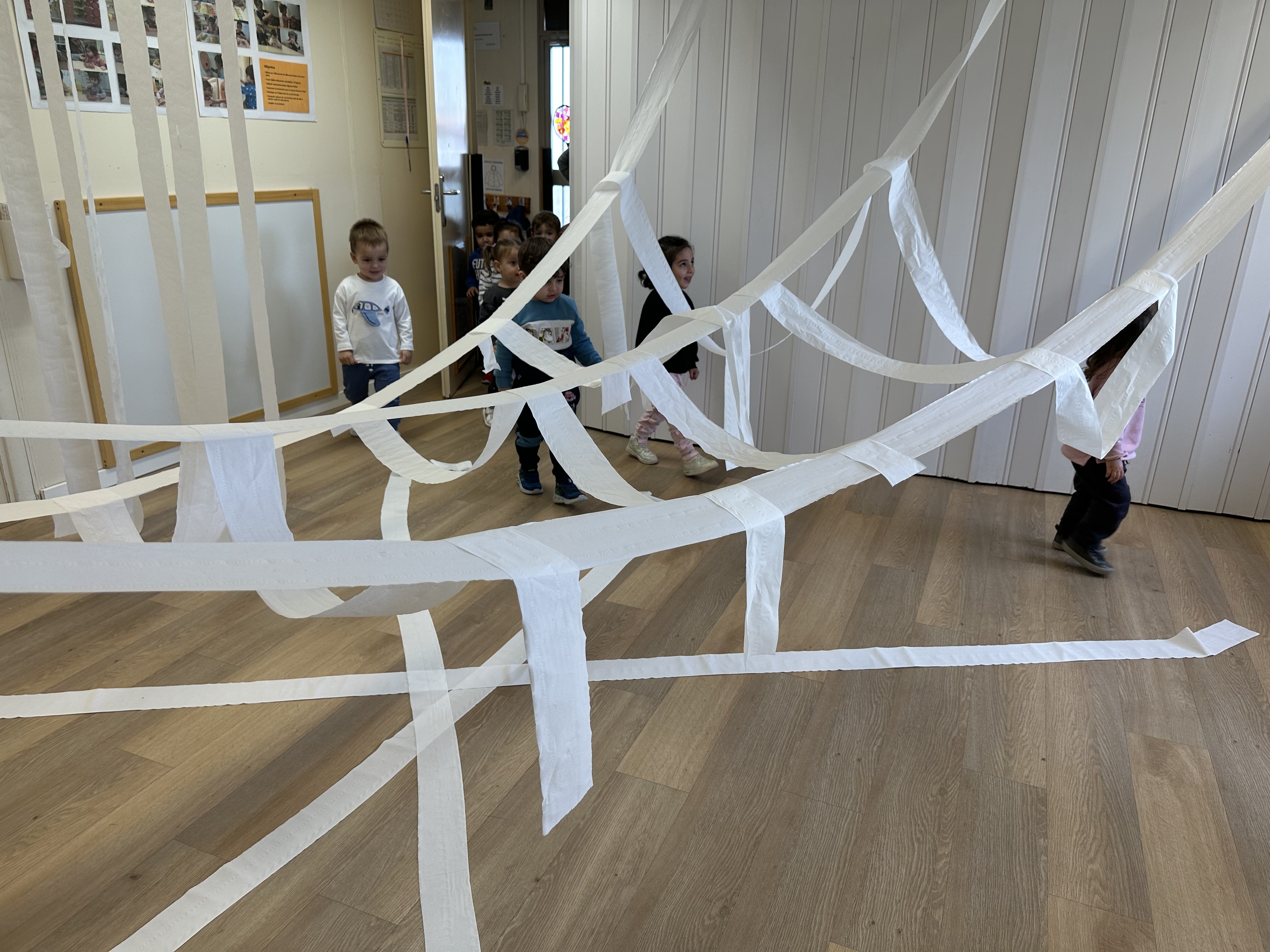 A les sessions multisensorials els infants gaudeixen des del primer moment en què descobreixen tot l'espai canviat. En entrar a l'estança es troben tot un laberint de paper que s'afanyen a desfer, després van descobrint els rotlles penjats i d'altres que fan rodolar per terra. De seguida el terra s'omple de paper, n'hi ha que juguen a fer muntanyes, altres el tiren per l'aire, d'altres si estiren a sobre... Tot un joc ric i divers amb tot el cos.