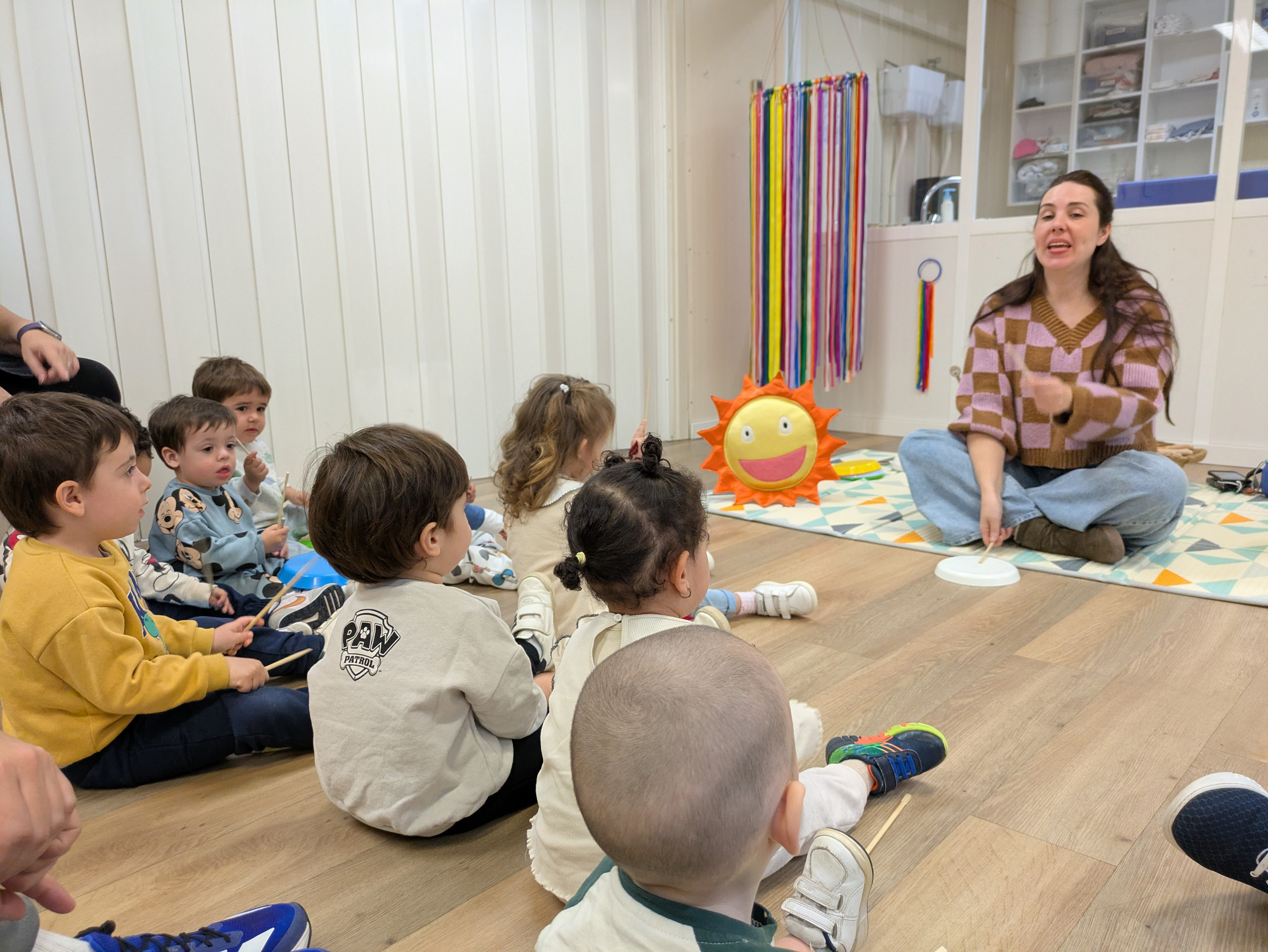 Ahir vam tenir la visita de la Roser, que ens va portar uns quants instruments per fer música entre tots i totes. Ens va cantar cançons i ens va ensenyar com acompanyar-les amb el so dels tambors, les claves i les maraques.