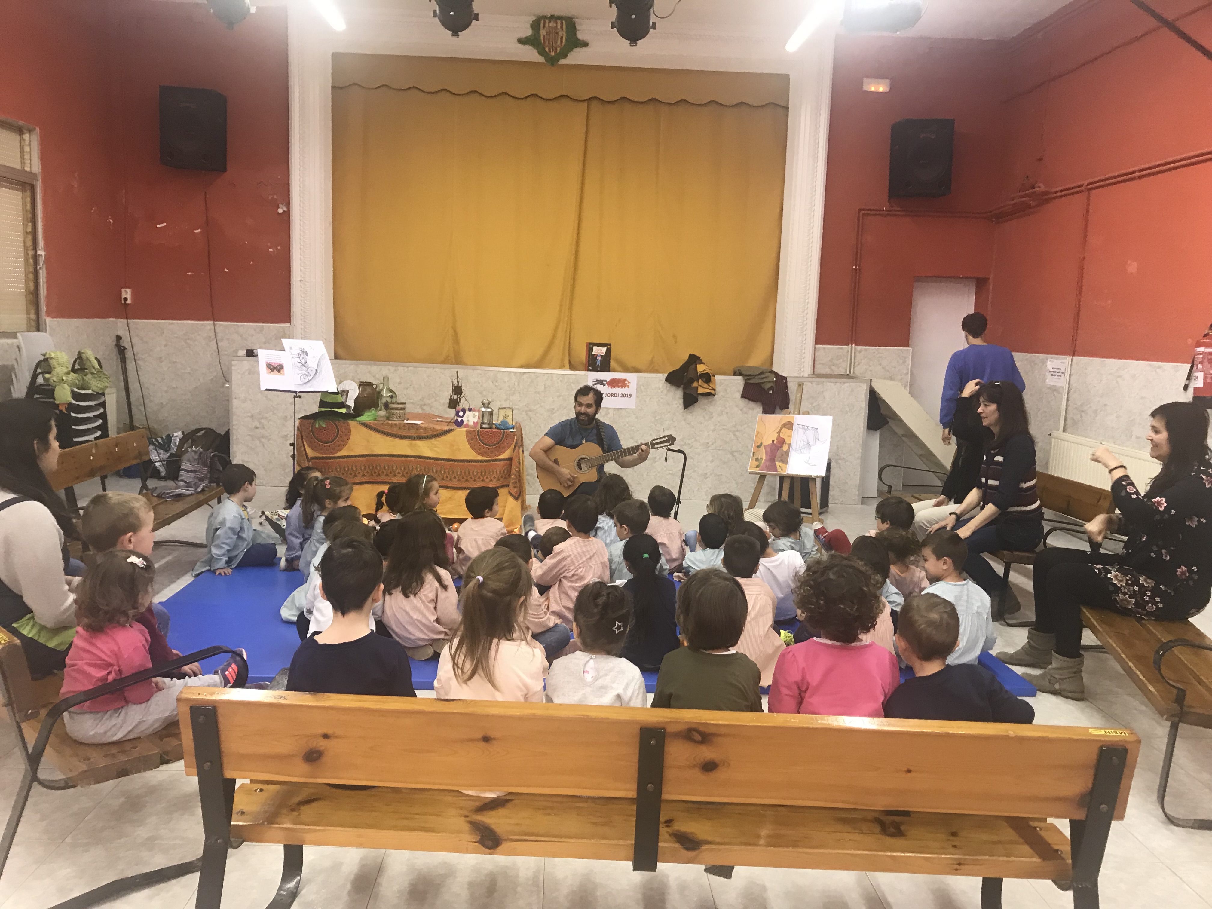 Avui els nens i nenes de l'escola "El Segrià" ens han convidat a escoltar el conte de "La Bruixa Brunilda", acompanyat de cançons amb guitarra.