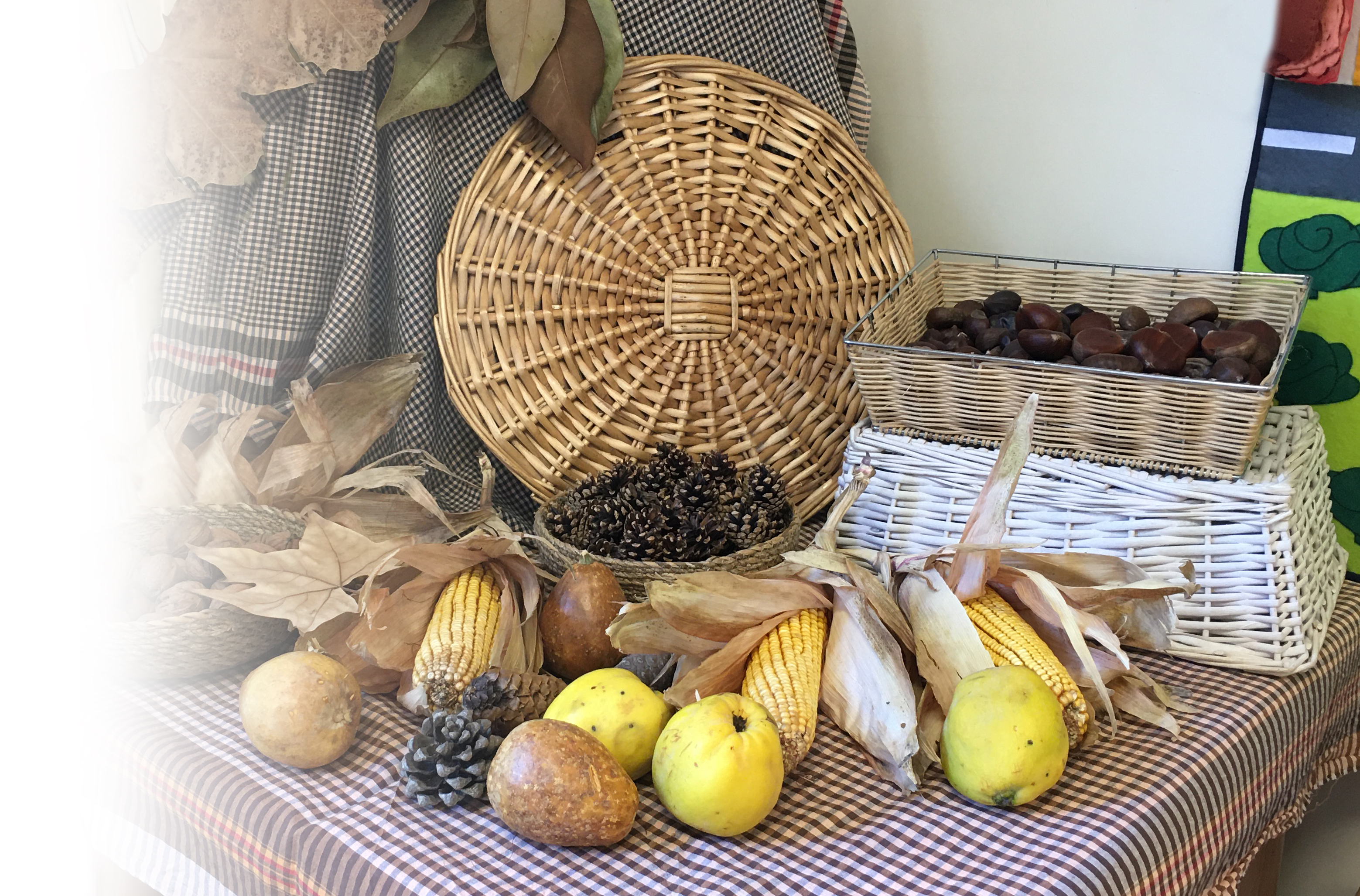 A partir de diversitat de fruits de tardor: carabasses, magranes, codonys, pinyes, nous, castanyes, fulles... realitzem diferents activitats sensorials, motrius, d’experimentació, de psicomotricitat fina, de llenguatge, plàstiques i matemàtiques.