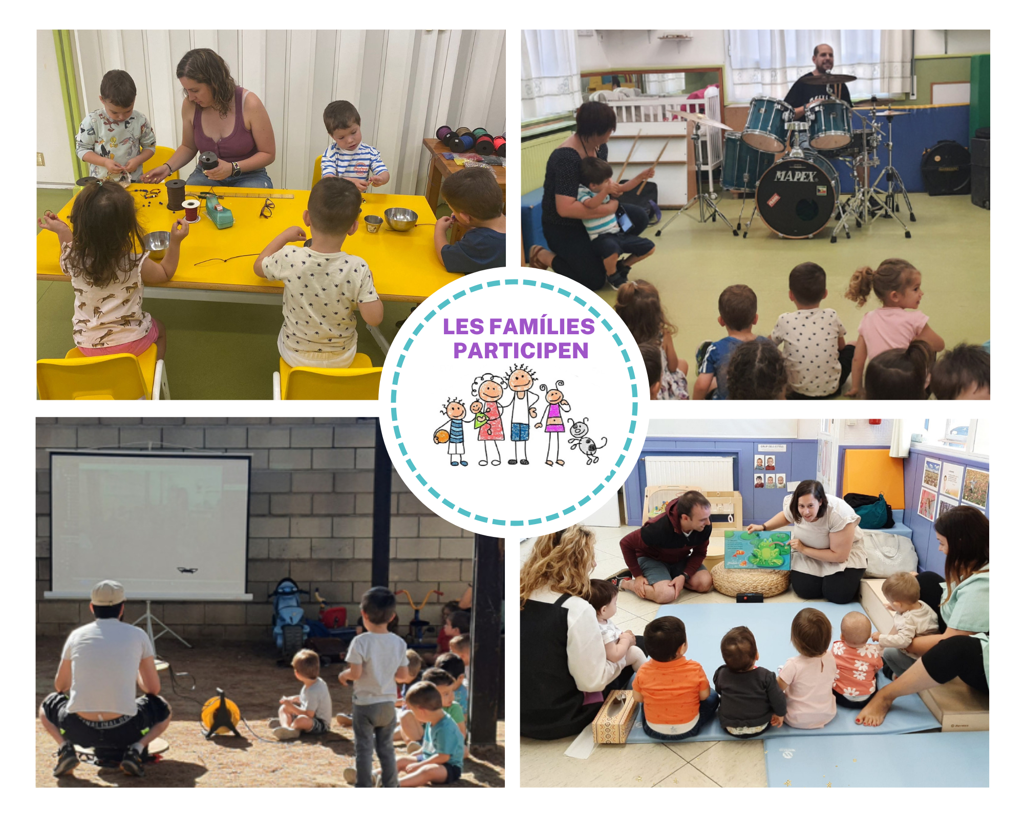 Per potenciar la participació de les famílies a l’escola, durant el segon i tercer trimestre, es porta a terme el projecte “Les famílies participen”. En aquest projecte convidem a les famílies a realitzar una petita activitat amb els infants com pot ser: explicar la seva professió, tocar un instrument, explicar un conte o qualsevol altra activitat que els vingui de gust compartir amb els infants.
