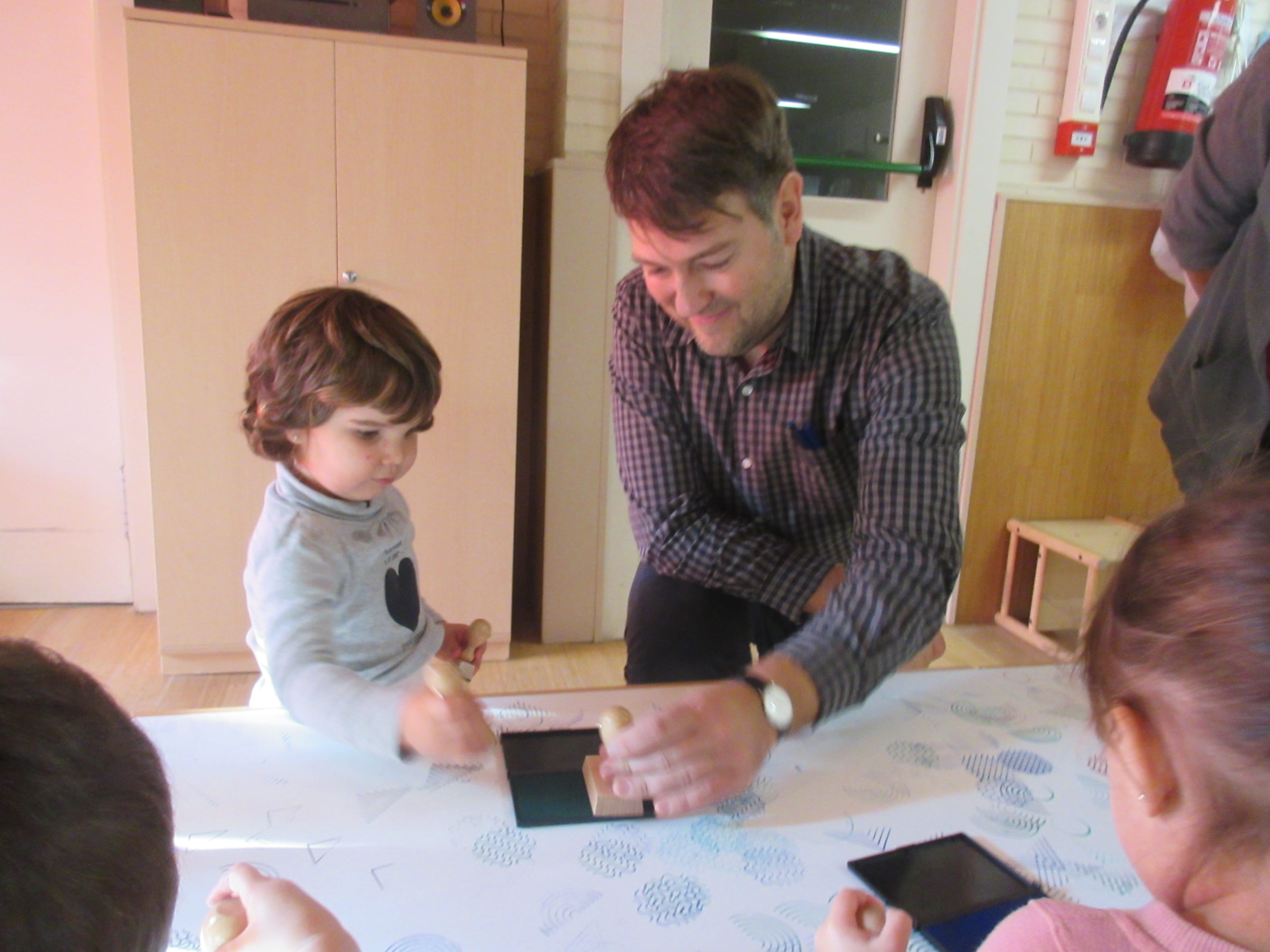 Divendres 01, de desembre del 2017L'artista Ignacio Uriarte ens ha visitat i ens ha fet una sèrie de propostes de joc. Els infants han gaudit molt estampant amb tampons, pintant amb retoladors i utilitzant el retroprojector.