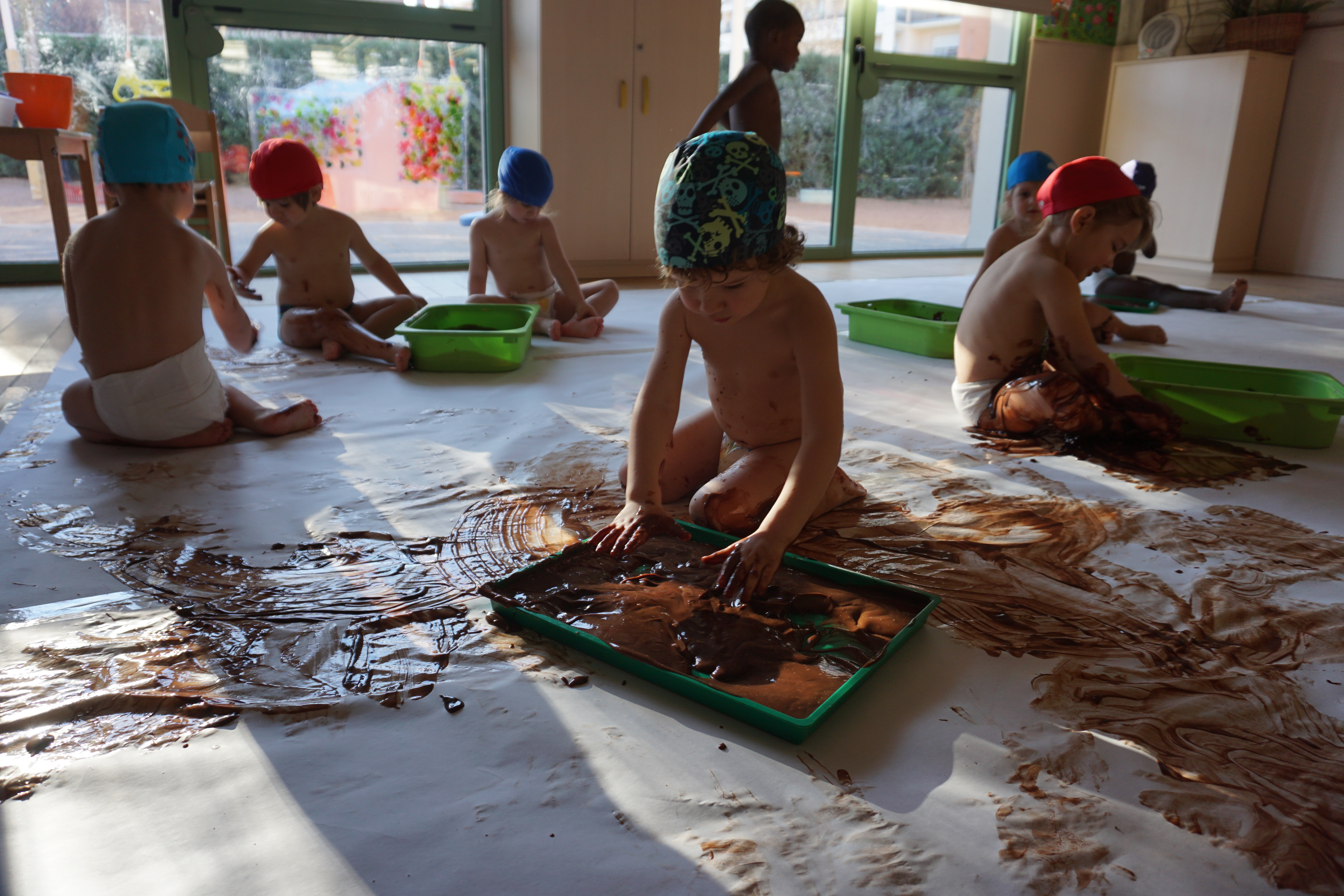 Aquests dies hem estat fent sessions de joc vivencials experimentant amb xocolata desfeta els infants d'1 i 2 anys, i amb puré de patata i pastanaga els infants de l'aula de nadons.