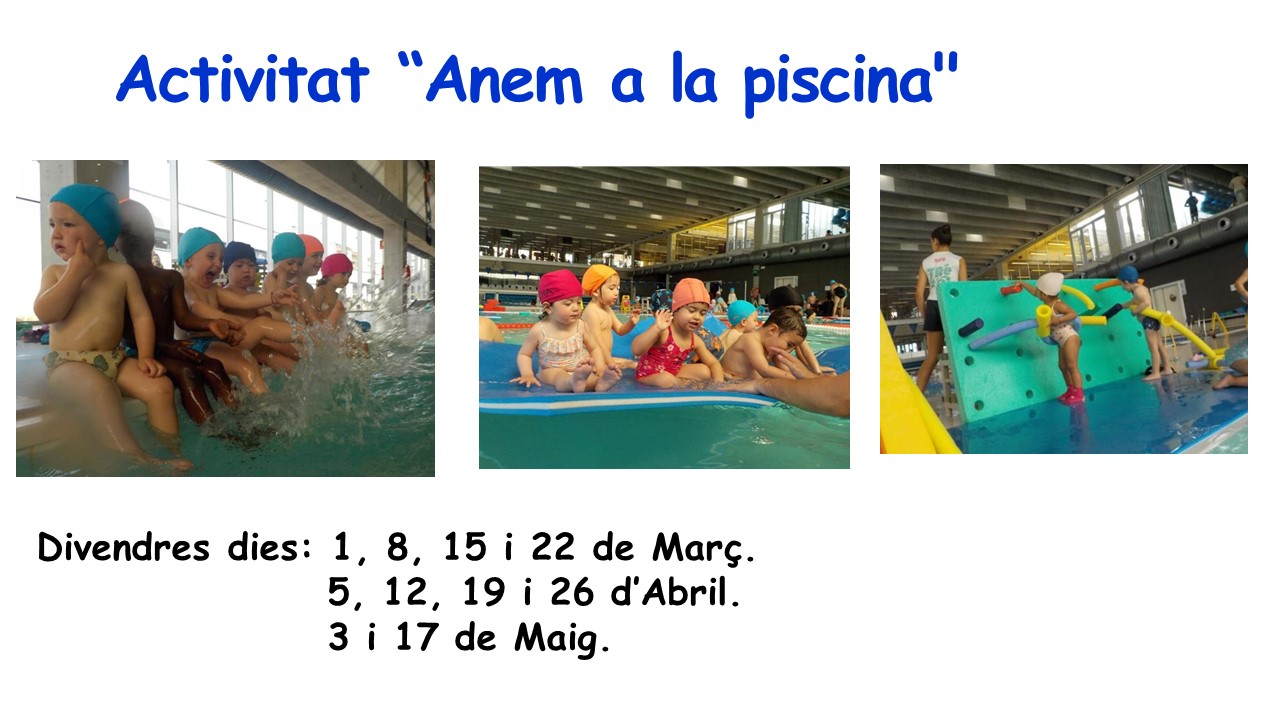 Tots els divendres a partir del dia 1 de Març fins el 17 de Maig, els infants que s'hagin apuntat, faran l'activitat de la piscina.