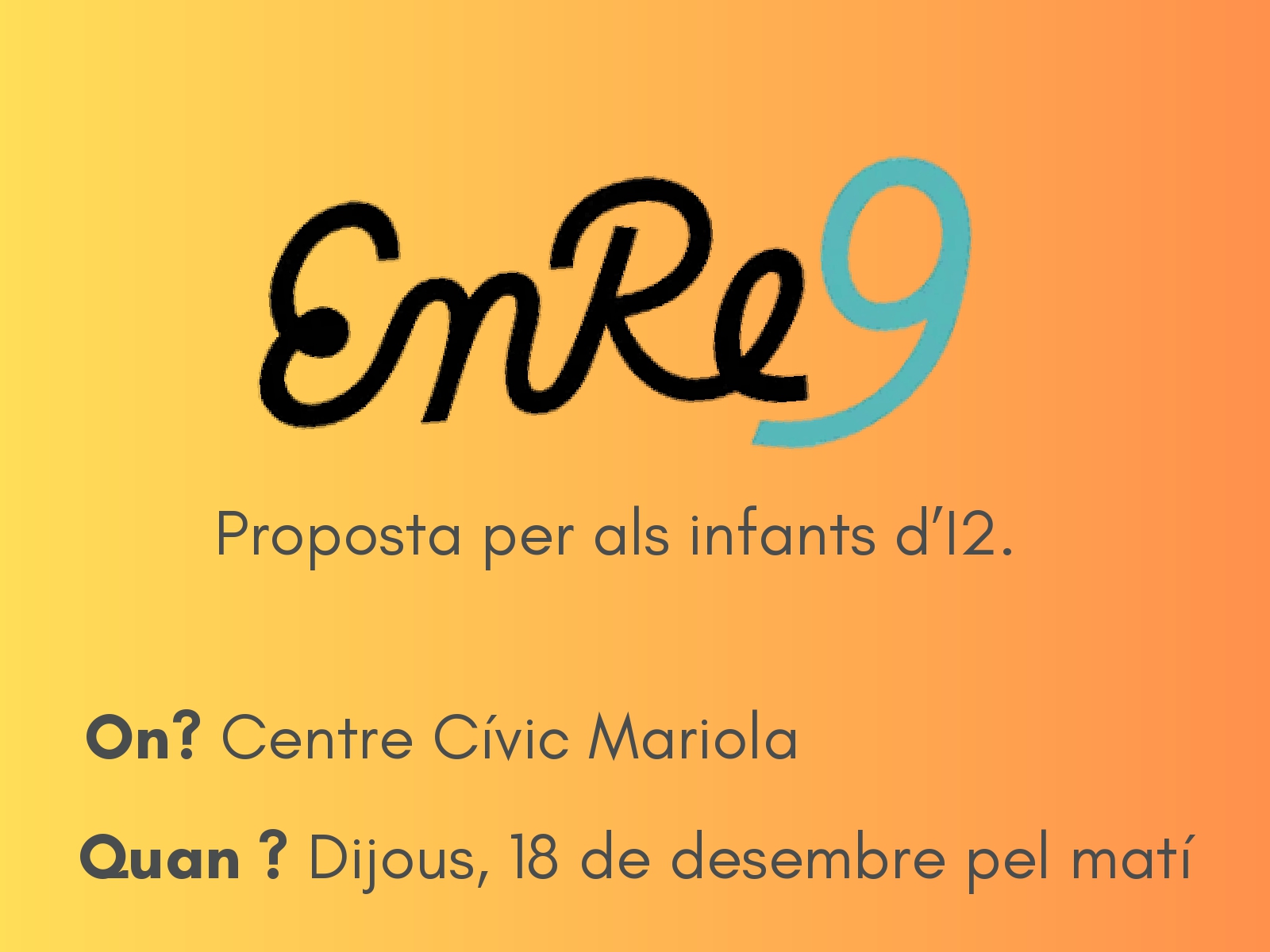 El proper dijous 18 de Desembre, els infants d'I2 aniran a escoltar el conte del "Tabalet", al Centre Cïvic de la Mariola.